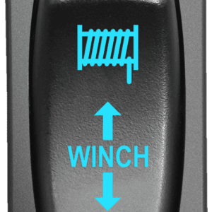 Alacsony profilú kétállású, vízálló kapcsoló kék háttér világítással.