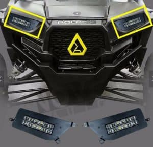 Polaris RZR modellekhez használható utángyártott, rázkódásbiztos, 2x 2160 lumen, 6000K színhőmérsékletű LED fényszóró készlet.
