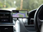 A vékony profilú talp és a fekete rögzítőelemek harmonikusan illeszkednek az autó belső teréhez.