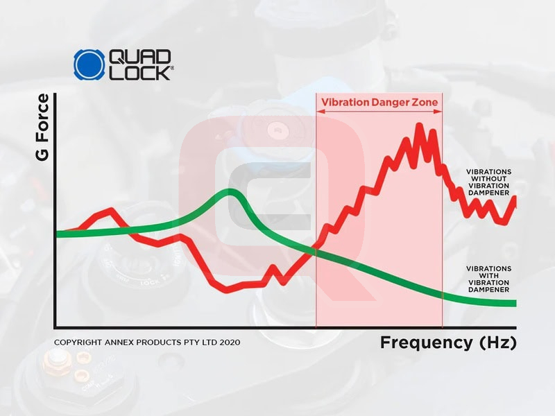 A Quad Lock rezgéscsillapító kettős vázas felfüggesztési rendszerrel rendelkezik, precízen tervezett szilikon csillapító betétekkel, amelyek elnyelik a rezgéseket és védik az okostelefonodat.