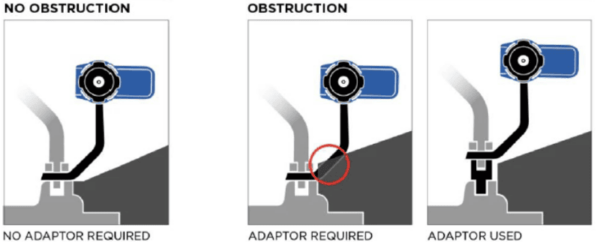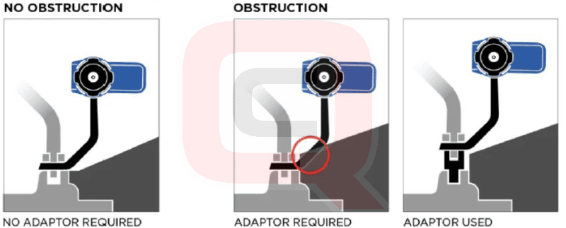 Ha a tükör az idomzat alá van rögzítve, vagy bizonyos alkatrészek akadályozzák a felszerelést, a 1126881 cikkszámú adapter szükséges a rögzítéshez.