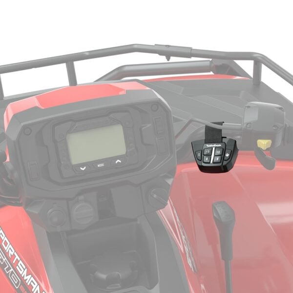 2021-es Sportsman 570-es hátsó audio dobozhoz használható távirányító. Vezérelje a zenéket és a hangerőt a távirányító segítségével, a Rockford Fosgate® hátsó audio tároló dobozon (2884856). Az integrált heveder biztosítja, hogy a távvezérlő kényelmesen és biztonságosan rögzüljön a kormányon.