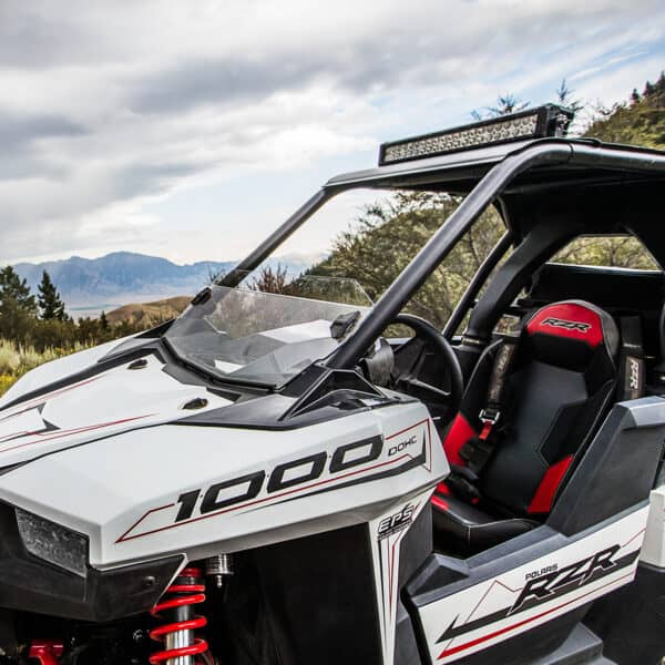 Polaris RZR RS1-hez használható polikarbonát fél szélvédő. A fél szélvédő használata is elegendő védelmet a nyújt az időjárási viszontagságok, sár és por ellen. Lock & Ride technológiájának köszönhetően szerszámok nélkül, egyszerűen és gyorsan fel,- és leszerelhető.