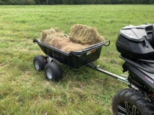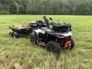 ATV-k, UTV-k mögött vontatható többcélú pótkocsi. Maximum teherbírás: 680 Kg. Az utánfutó mérete: 2436 x 1473 x 787 mm. Rakodófelület: 1755 x 1011 x 454 mm.