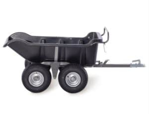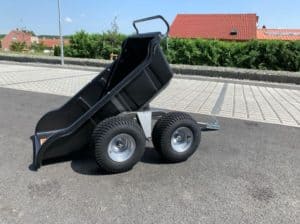 ATV-k és UTV-k mögött vontatható többcélú pótkocsi. Az utánfutó könnyedén átalakítható kerti talicskává az összecsukható vonórúdnak és négy kerekének köszönhetően.