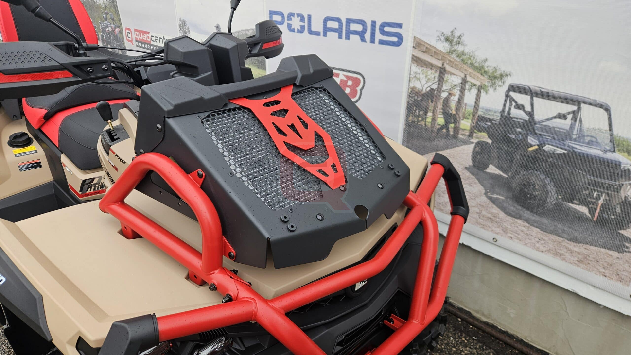 Speciális “sárjáró” kialakítás: az első platóra kihelyezett hűtő és szűrő rendszerrel. A kínai Aodes gyártó legnagyobb teljesértékű kétszemély ATV-je, a 1000 L EPS MUD kivitelben.